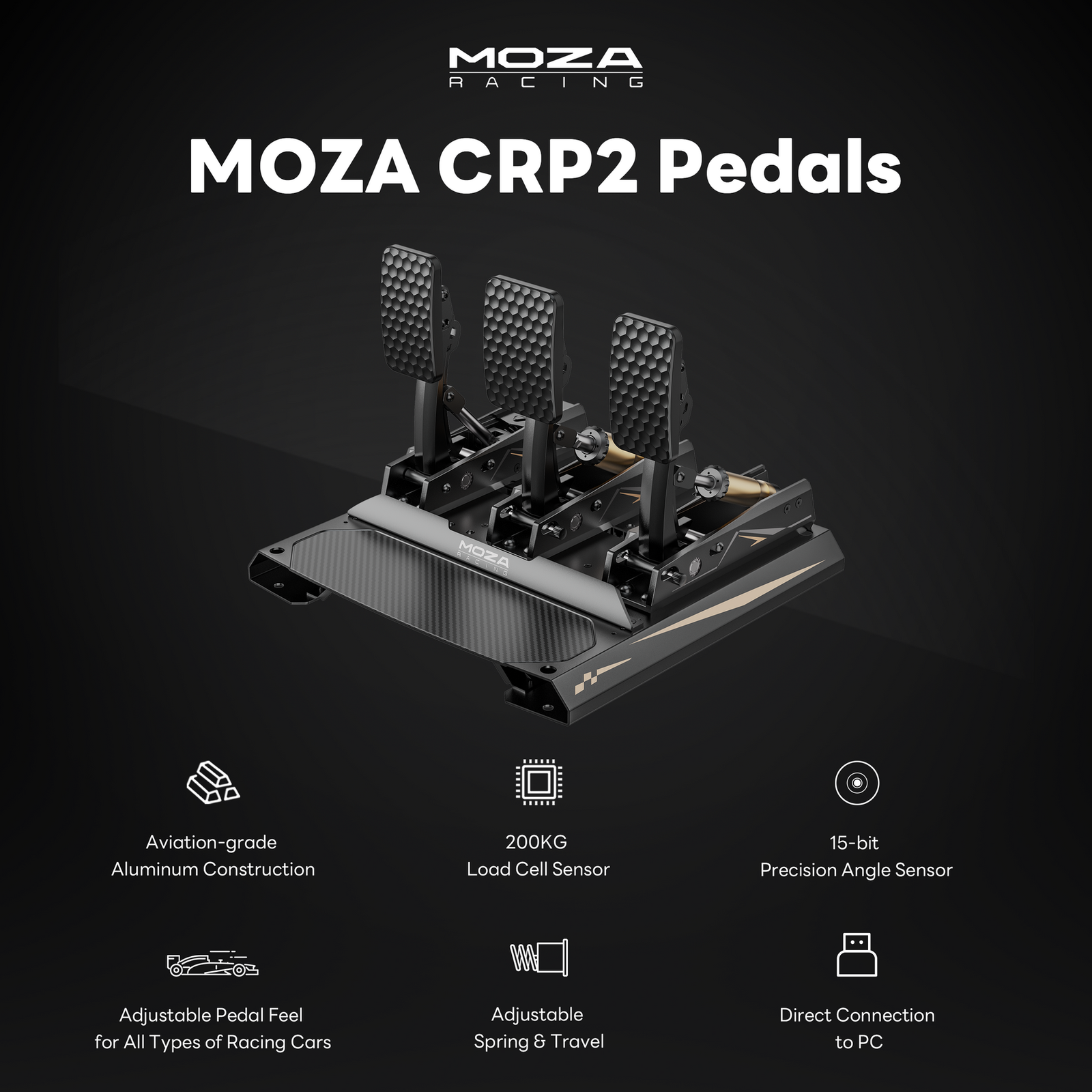 Domina cada frenada con los MOZA CRP2 Load Cell Pedals, unos pedales de simulación de alta gama diseñados para quienes exigen máximo realismo y precisión. Fabricados en aluminio aeroespacial CNC con placa de talón en fibra de carbono, integran sensores avanzados, diseño ergonómico y una capacidad de ajuste total sin herramientas. Una solución profesional para simracers que buscan rendimiento realista en PC y Xbox.