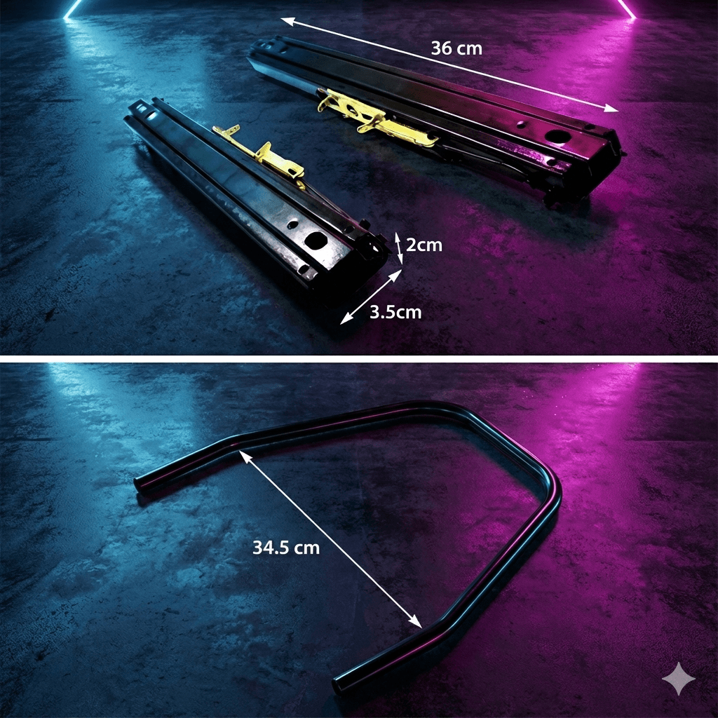 Mejora la ergonomía de tu simulador con este kit de Rieles universales tipo barra. A diferencia de las guías estándar, este modelo incluye un asa de ajuste central (tipo barra) que permite desbloquear el asiento de forma mucho más cómoda y rápida, igual que en los coches de competición.