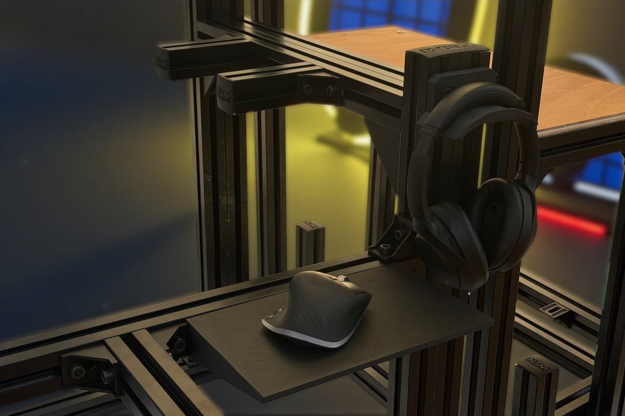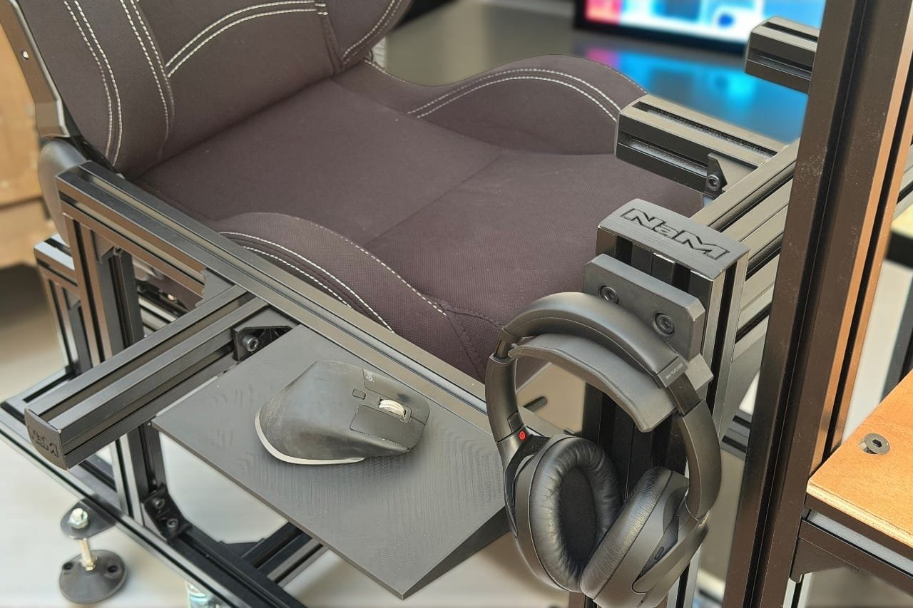El Soporte de ratón en 3D para cockpit es el complemento ideal para quienes buscan un setup más funcional y completo. Fijada directamente a la estructura de perfilería, te permite tener el ratón siempre accesible.