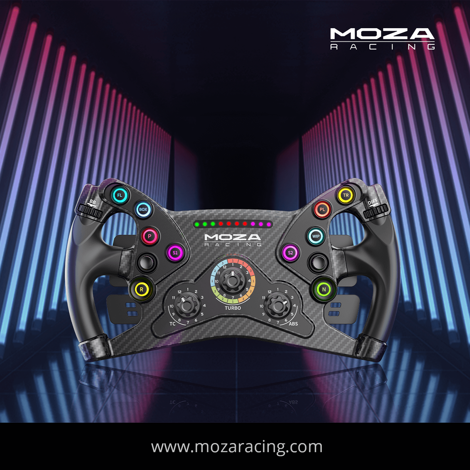 • Hasta 8 colores configurables y modos personalizables desde MOZA Pit House