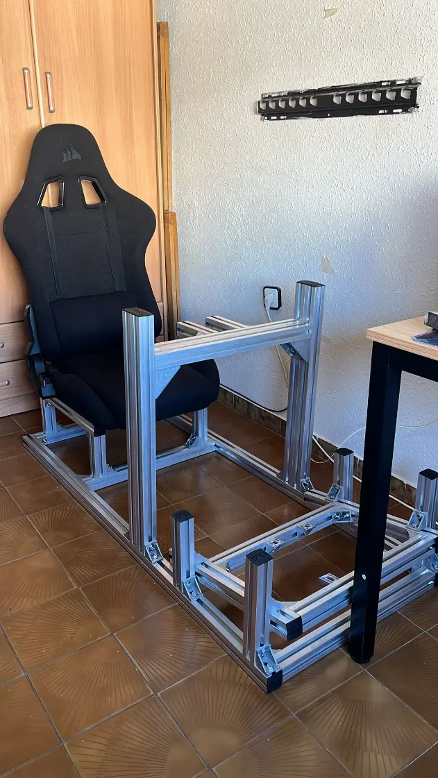 Construye tu cockpit de simracing con el GT1, un kit de perfiles de aluminio 40×40 robusto, estable y fácil de montar.